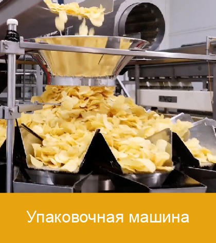 Упаковка:Готовые чипсы фасуются в пакеты, сашеты или контейнеры. Автоматическая упаковочная машина обеспечивает герметичность, защиту продукта, сохранение свежести и увеличение срока годности.